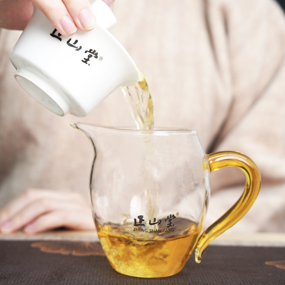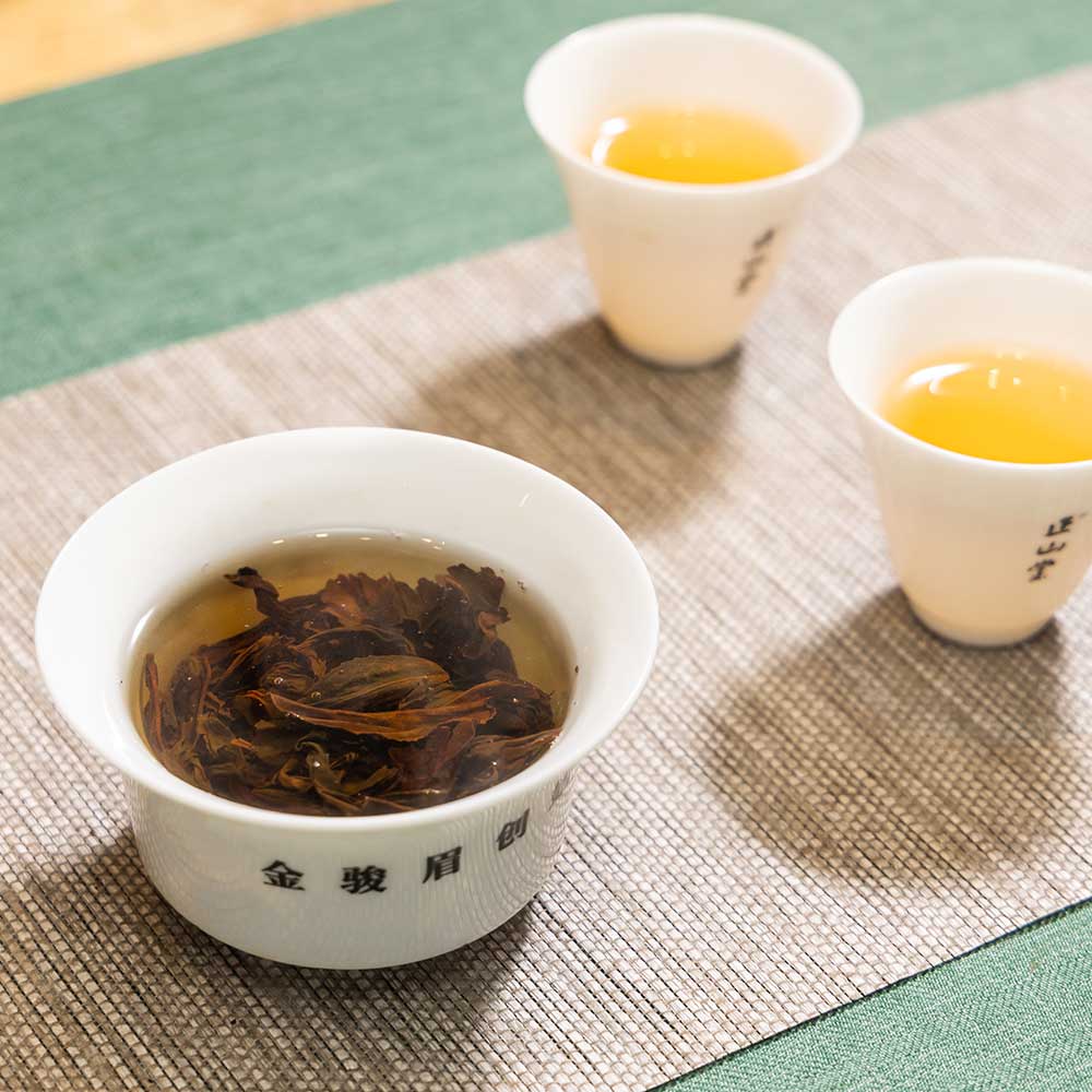 正山堂の看板商品は金駿眉ですが、中国でもその次に売れているのが妃子笑だそうです。確かにこのお茶のライチのような果物系の甘い香りは唯一無二。妃子笑を名乗るお茶は数多くありますが、このお茶の香りの高さは「さすが正山堂・・・」と感じられるものです。淡目に出して、何煎も重ねていくことで、徐々に身体の中に香りが貯まっていく変化を楽しむのも良いですし、ティーポットなどで少し長蒸らしをして出すとインパクトのある味が楽しめます。ティーポットを使用する場合は、3分の1程度湯を残し、差し湯をするように淹れていくと3~4煎は楽しめます。