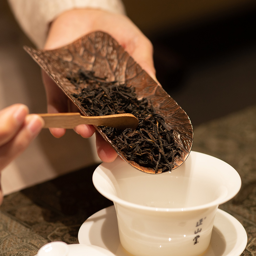 正山堂の紅茶ラインナップを飲んでいくと、やはり武夷山国家級自然保護区産の茶葉には独特の余韻があり、非常に美味しいと感じるものが多いです。しかし、自然保護区は大規模な開発が出来ないため、茶葉の産量は有限。当然お値段も高い、というのが悩みの種でした。そこで現れたのがこの含芬です。このお茶は武夷山国家級自然保護区産の茶葉なのに、お値段が比較的お手頃。それなのに甘い香りと余韻はしっかりとあるというお茶です。その理由は少し大きめの茶葉まで使っているからなのですが、これにはメリットもあり、ガサッと淹れたとしても、美味しさを存分に発揮してくれる大らかさに繋がっています。普段飲みできる、品質の確かなお茶が欲しいという方に、ピッタリのお茶だと思います。